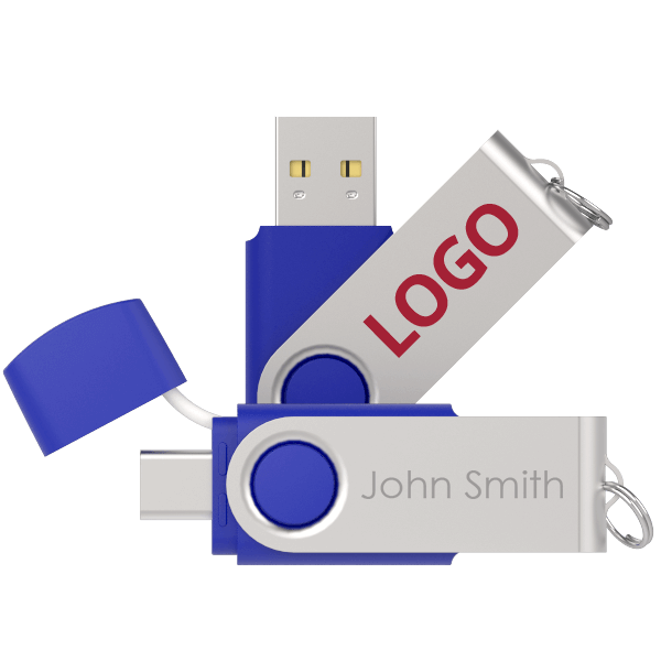 The Twister Go is related to our Twister USB Flash Drive. It features two USB connectors on the one Flash Drive. One end features the standard USB connector that you can use on laptops and PCs. The other end is a USB-C connector, suitable for use with portable devices such as smartphones, tablets and digital cameras. The protective cap is tethered to the body of the Flash Drive to prevent loss.