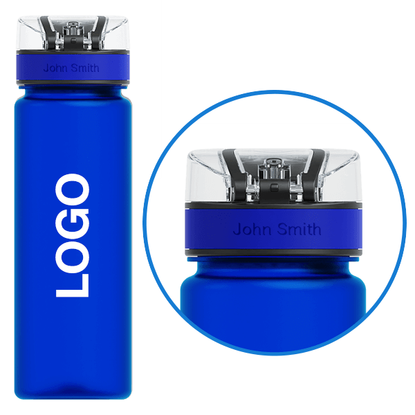 The durable Aqualok bottle is available in different colors and is made from tough translucent Tritan™ plastic with an easy-grip surface texture. This model features a simple, elegant body design with a secure-lock lid and handy carry loop. We can print your logo onto two sides of the bottle and also around the sturdy lid. A fantastic custom water bottle that can be used daily. The Aqualok bottle also has a metallic version available - Aqualok Metal