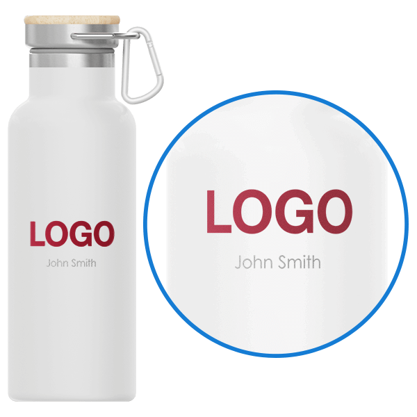 The Traveler double-wall metal water bottle features vacuum insulation technology, designed to maintain your beverage temperature for longer. We can Screen Print or Laser Engrave your logo onto the generous branding area on the water bottle body, and we can also Screen Print your logo onto the stylish bamboo lid. The Traveler also features a handy carry loop so you can take it with you wherever you go.